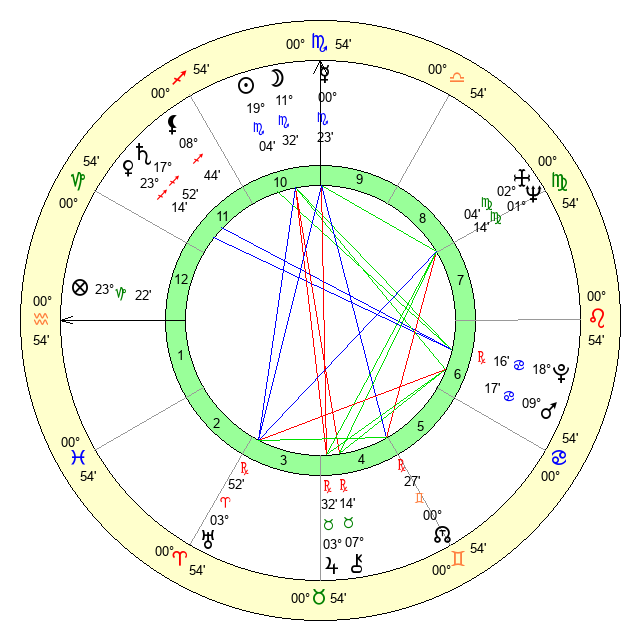 | Moon | 11 Scorpio 29 | 13 Leo 9 | 23 Taurus 41 |