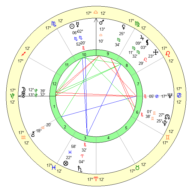 Venus | 25 Virgo 34 | 15 Sagittarius 33 | 18 Aquarius 19 |