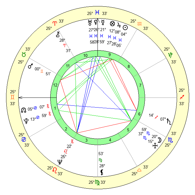 | Sun | 4 Pisces 6 | 5 Pisces 20 | 10 Gemini 12 |