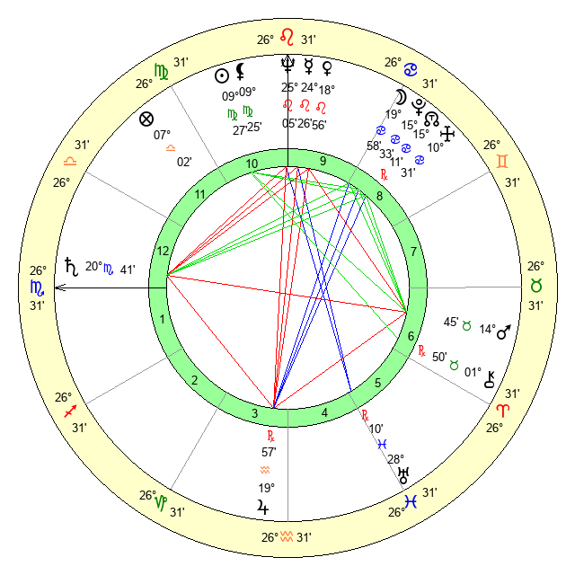 | Mercury | 24 Leo 26 | 0 Virgo 17 | 27 Scorpio 15 |