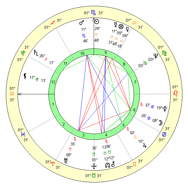 | Neptune | 3 Virgo 4 | 29 Pisces 57 | 2 Virgo 53 |