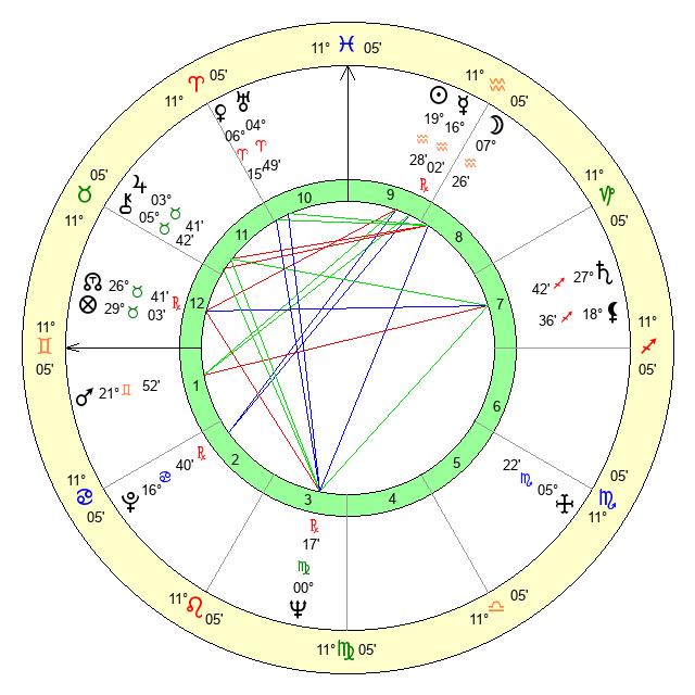 | Moon | 7 Aquarius 27 | 3 Cancer 23 | 22 Leo 22 |