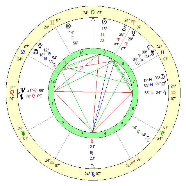 | Neptune | 21 Leo 59 | 1 Aries 16 | 24 Leo 21 |