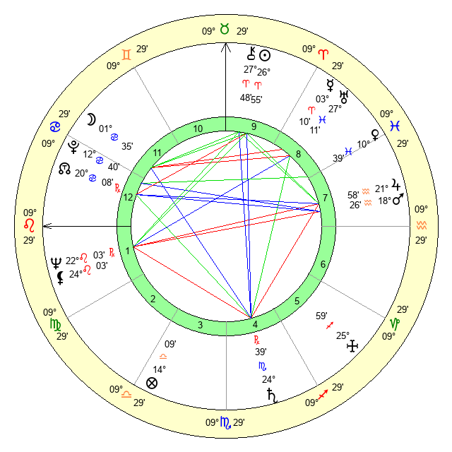 | Mars | 18 Aquarius 26 | 29 Cancer 48 | 26 Aries 12 |