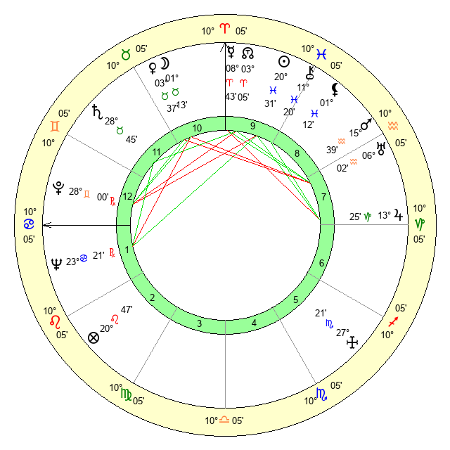 | Sun | 20 Pisces 32 | 21 Pisces 22 | 9 Cancer 13 |