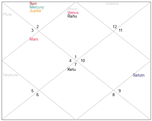 | Ketu | 20 Scorpio 4 | 23 Virgo 18 | 14 Scorpio 59 |