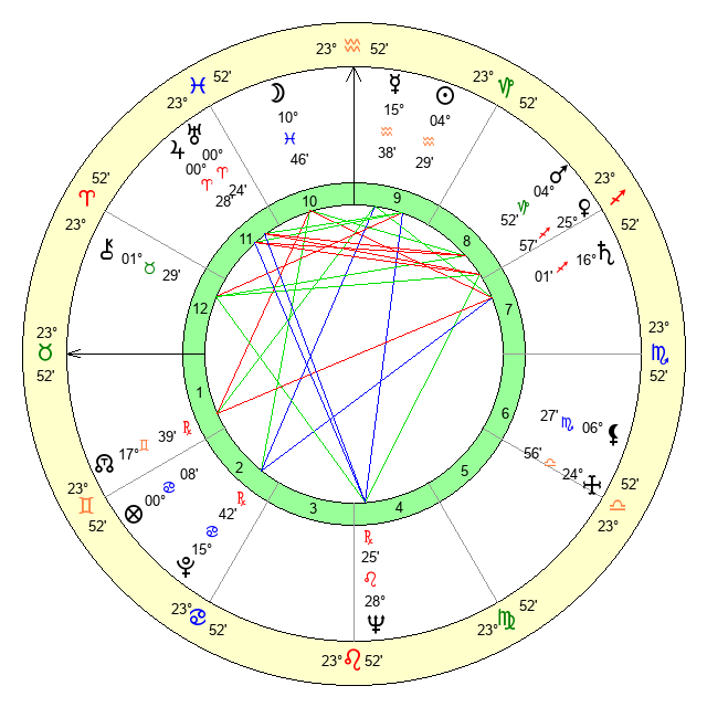 | Venus | 25 Sagittarius 58 | 22 Pisces 10 | 24 Aries 44 |