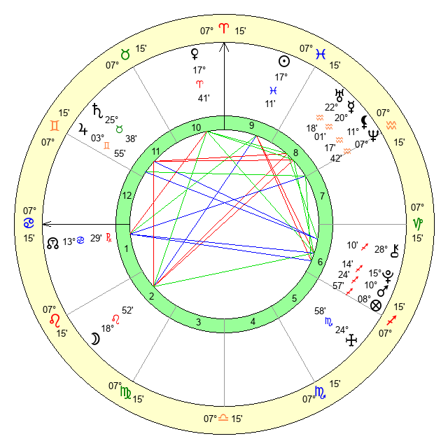 | Moon | 19 Leo 9 | 0 Cancer 21 | 1 Cancer 35 |