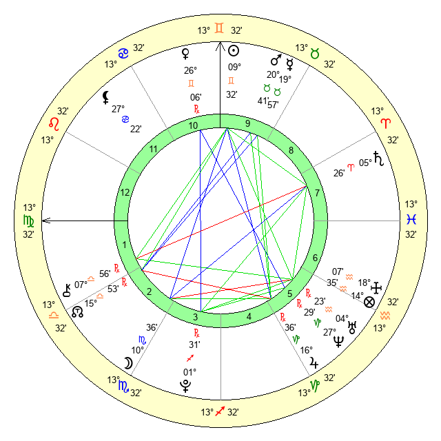 | Sun | 9 Gemini 33 | 9 Gemini 32 | 7 Cancer 15 |