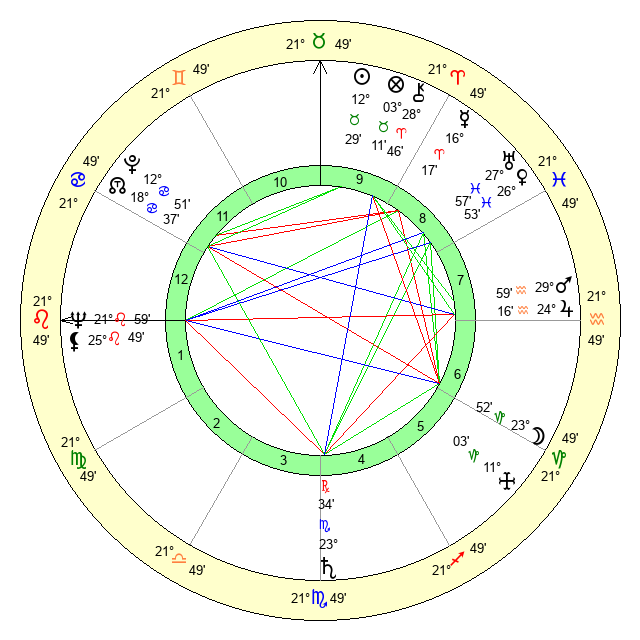 | Mars | 0 Pisces 0 | 6 Leo 51 | 4 Taurus 57 |