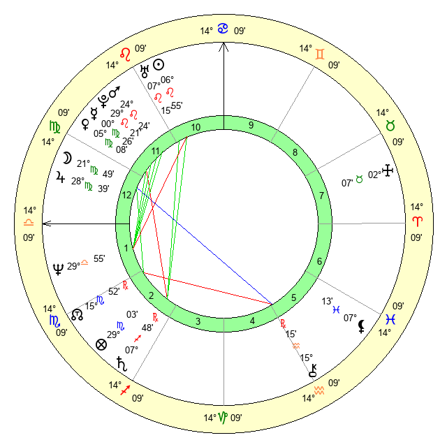 | Moon | 21 Virgo 45 | 13 Libra 55 | 15 Pisces 13 |