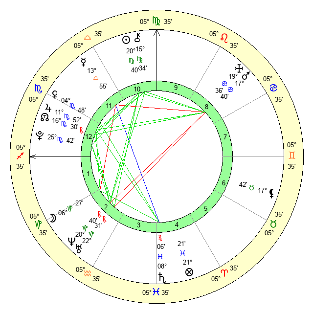 | Mercury | 13 Libra 55 | 21 Virgo 23 | 4 Scorpio 32 |