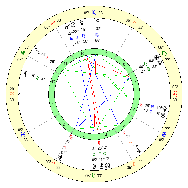 | Neptune | 3 Virgo 28 | 29 Pisces 32 | 2 Virgo 16 |