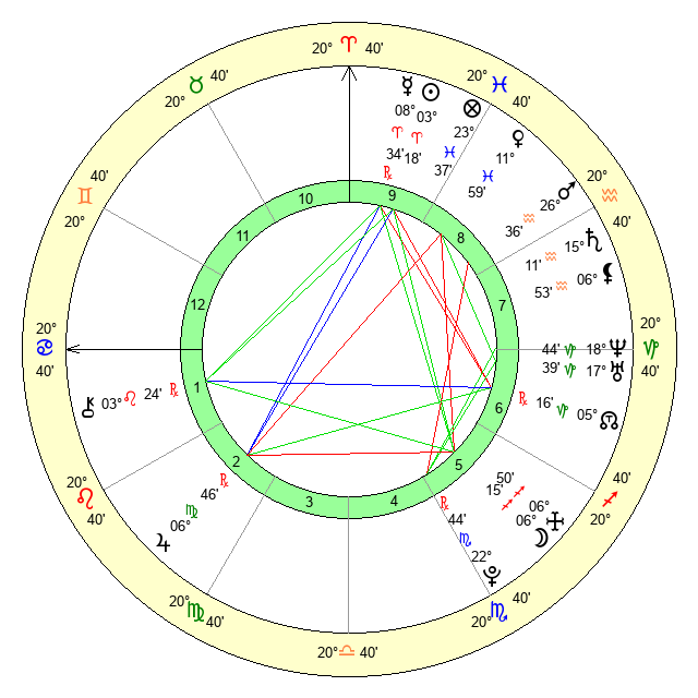 | Venus | 11 Pisces 59 | 2 Aries 15 | 22 Aries 41 |
