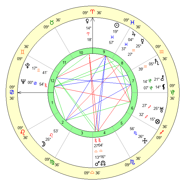 | Neptune | 0 Cancer 55 | 29 Pisces 17 | 4 Cancer 0 |