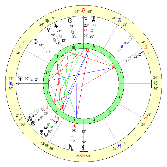 | Venus | 28 Virgo 49 | 6 Leo 0 | 9 Scorpio 14 |