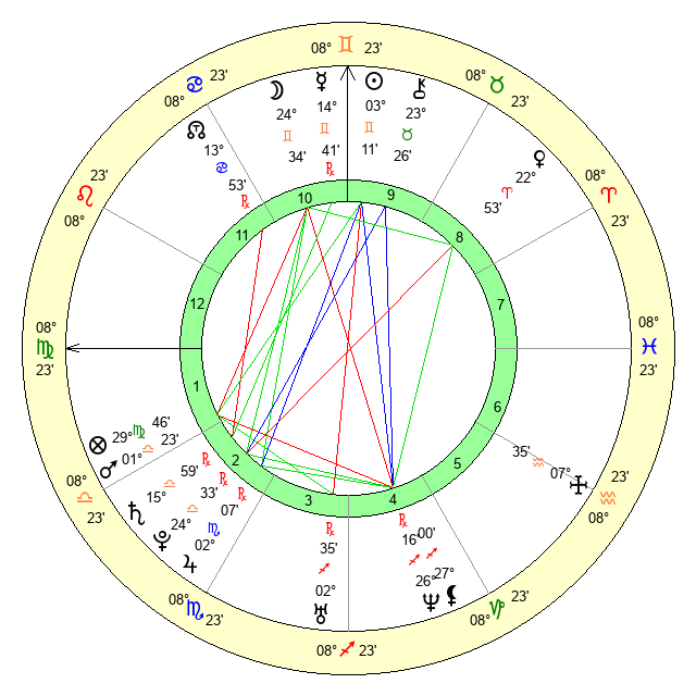 | Jupiter | 1 Scorpio 55 | 26 Gemini 23 | 0 Scorpio 23 |