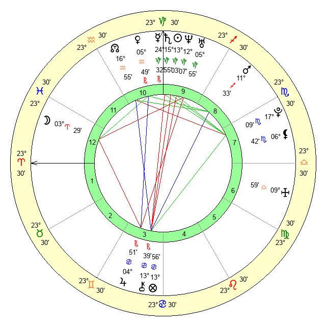 | Moon | 3 Aries 32 | 17 Cancer 21 | 6 Leo 13 |