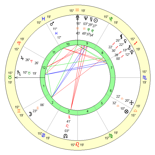 | Moon | 23 Gemini 19 | 24 Virgo 40 | 19 Taurus 56 |
