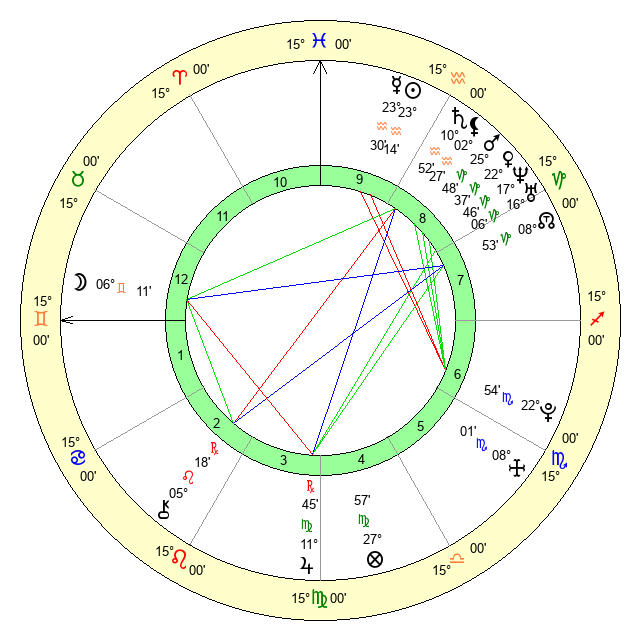 | Moon | 6 Gemini 19 | 25 Leo 38 | 28 Leo 14 |