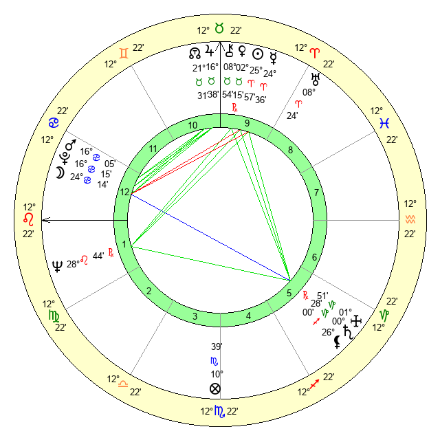| Neptune | 28 Leo 45 | 0 Aries 37 | 29 Leo 54 |