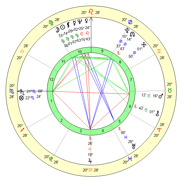 | Moon | 15 Virgo 59 | 10 Pisces 31 | 3 Taurus 57 |
