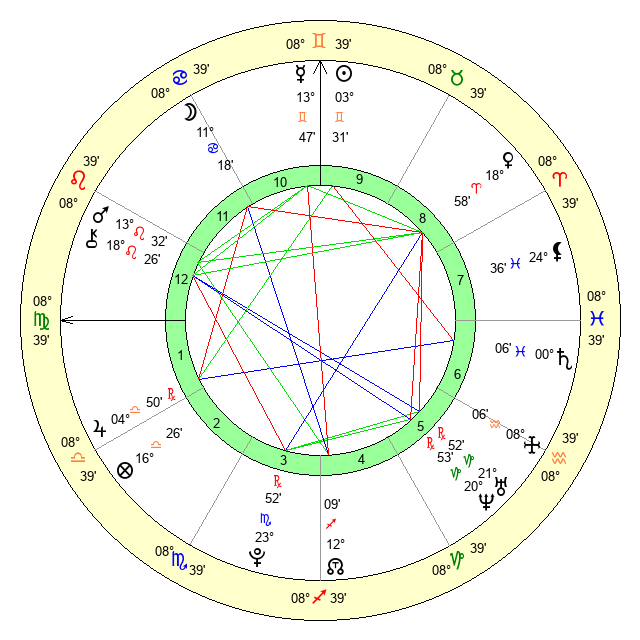 | Jupiter | 4 Libra 40 | 26 Gemini 23 | 5 Libra 29 |