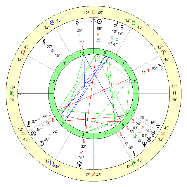 | Venus | 26 Gemini 30 | 22 Aries 45 | 12 Gemini 11 |