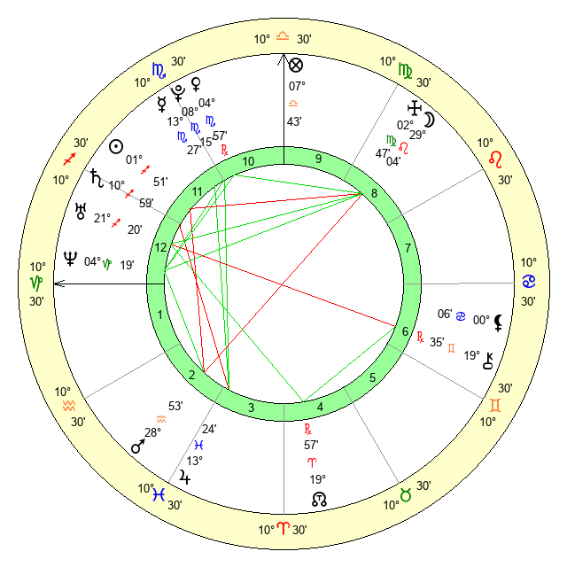 | Moon | 29 Leo 2 | 18 Virgo 4 | 29 Capricorn 20 |