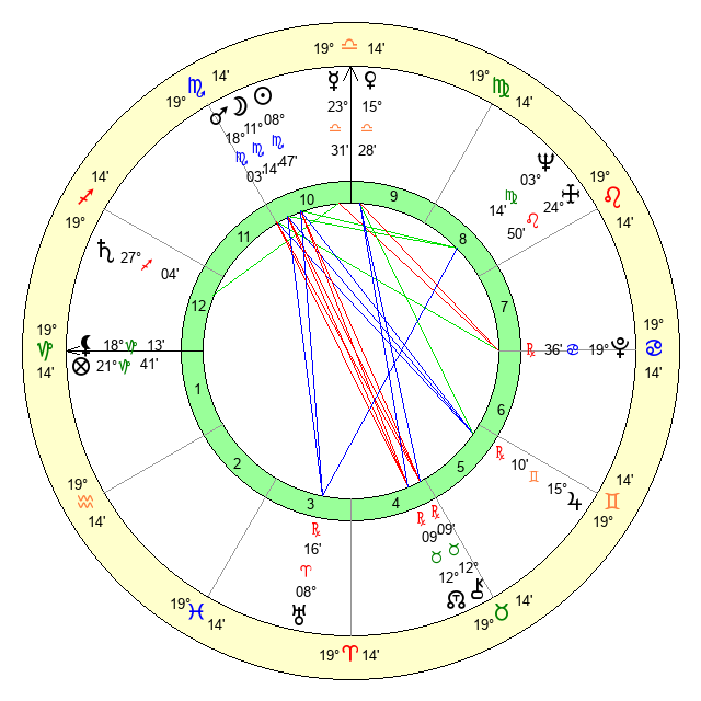 | Neptune | 3 Virgo 15 | 29 Pisces 46 | 2 Virgo 39 |