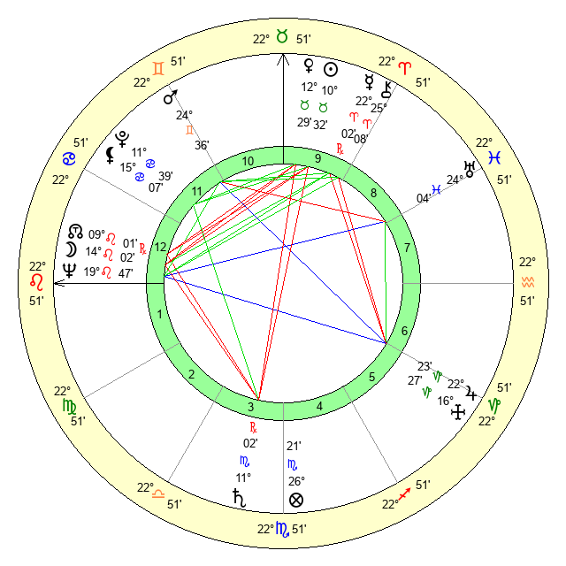 | Neptune | 19 Leo 47 | 1 Aries 6 | 22 Leo 5 |