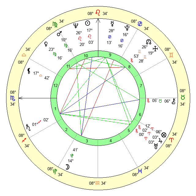 | Venus | 23 Virgo 16 | 12 Cancer 17 | 6 Libra 44 |
