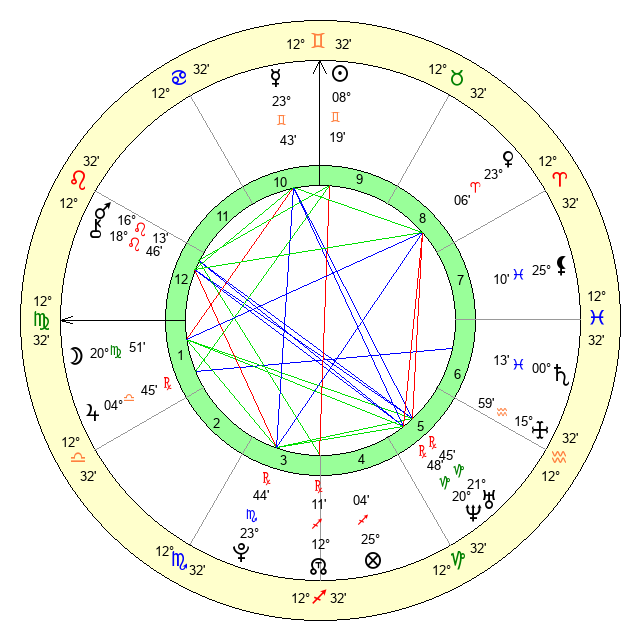 | Moon | 20 Virgo 55 | 14 Cancer 10 | 27 Scorpio 57 |