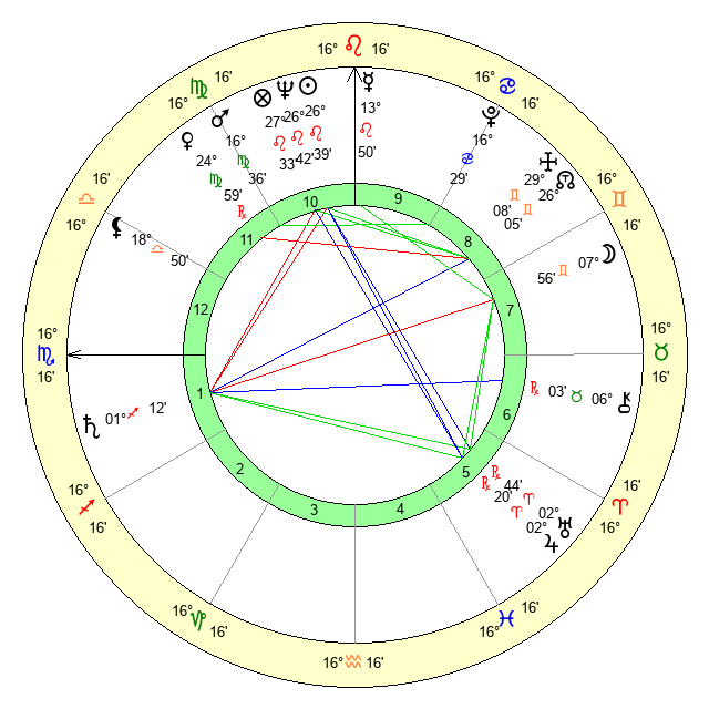 | Mercury | 13 Leo 51 | 9 Leo 26 | 13 Scorpio 34 |