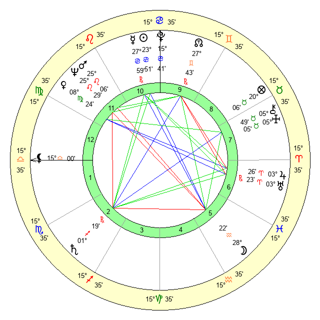 | Sun | 23 Cancer 52 | 25 Cancer 8 | 29 Libra 3 |