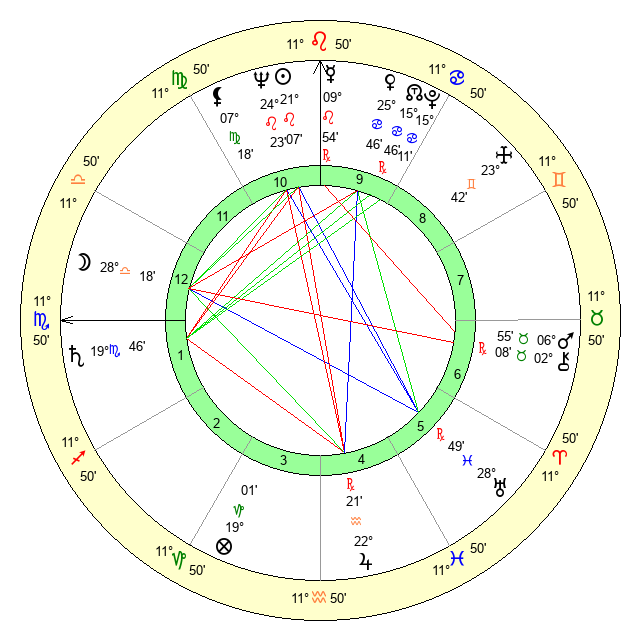 | Moon | 28 Libra 18 | 2 Taurus 2 | 24 Gemini 27 |