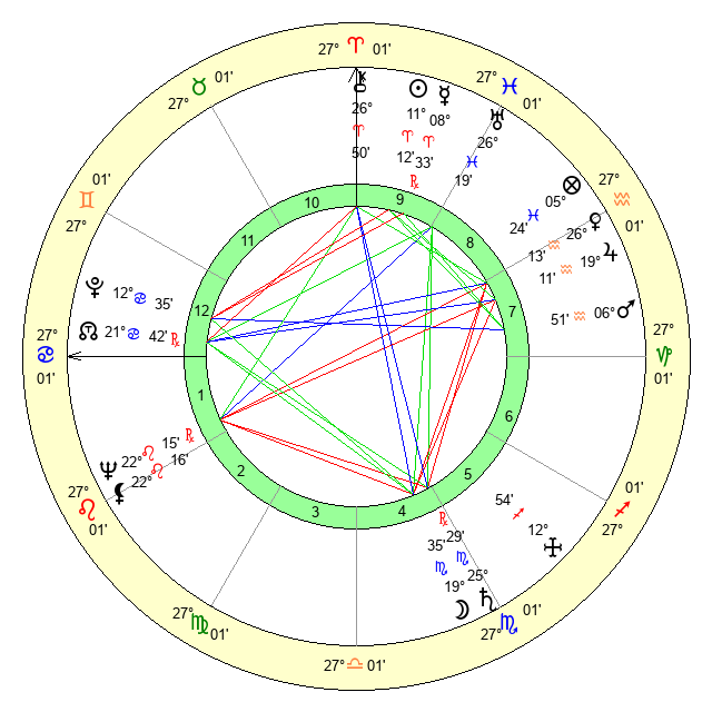 | Sun | 11 Aries 13 | 12 Aries 13 | 16 Cancer 42 |