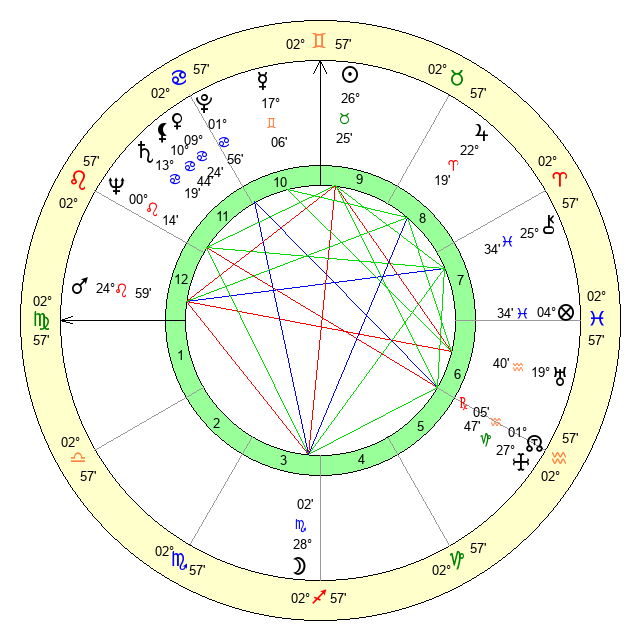 | Jupiter | 22 Aries 6 | 24 Gemini 51 | 4 Taurus 58 |