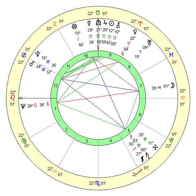 | Neptune | 28 Leo 36 | 1 Aries 10 | 0 Virgo 30 |