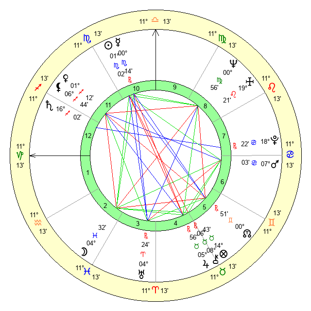 | Neptune | 0 Virgo 57 | 29 Pisces 56 | 0 Virgo 34 |