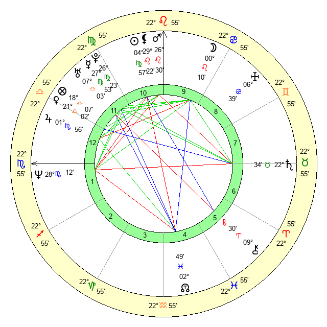 | Moon | 0 Leo 10 | 7 Scorpio 46 | 5 Leo 30 |