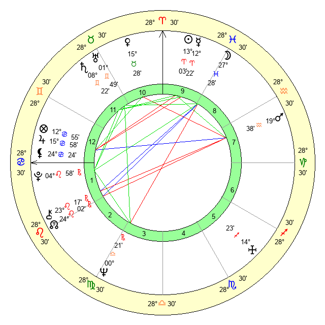 | Sun | 13 Aries 4 | 14 Aries 11 | 2 Cancer 18 |