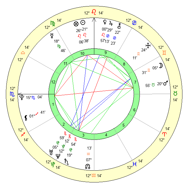 | Mercury | 18 Virgo 46 | 4 Leo 55 | 9 Virgo 41 |