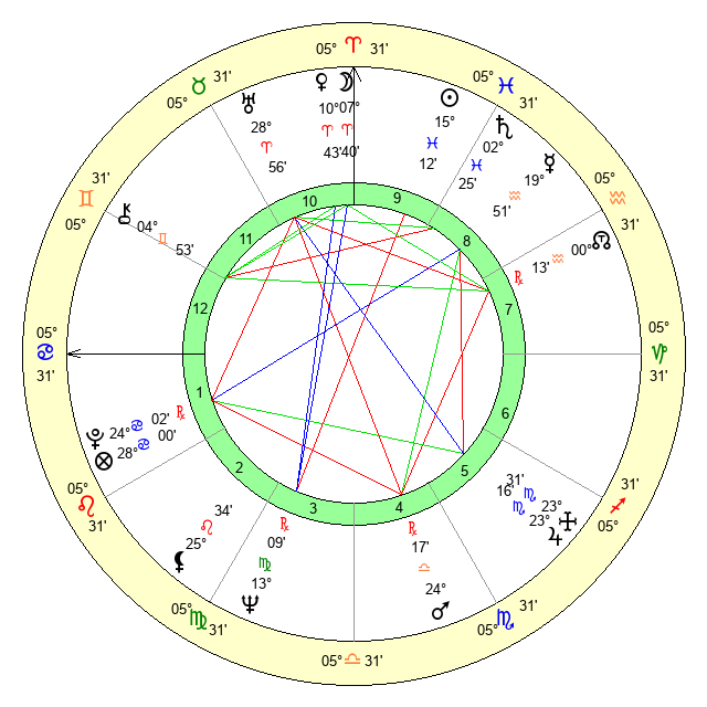 | Venus | 10 Aries 44 | 10 Aries 23 | 26 Cancer 39 |