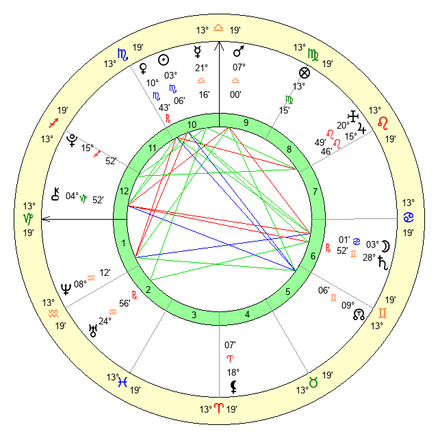 | Venus | 10 Scorpio 44 | 15 Libra 57 | 0 Scorpio 11 |