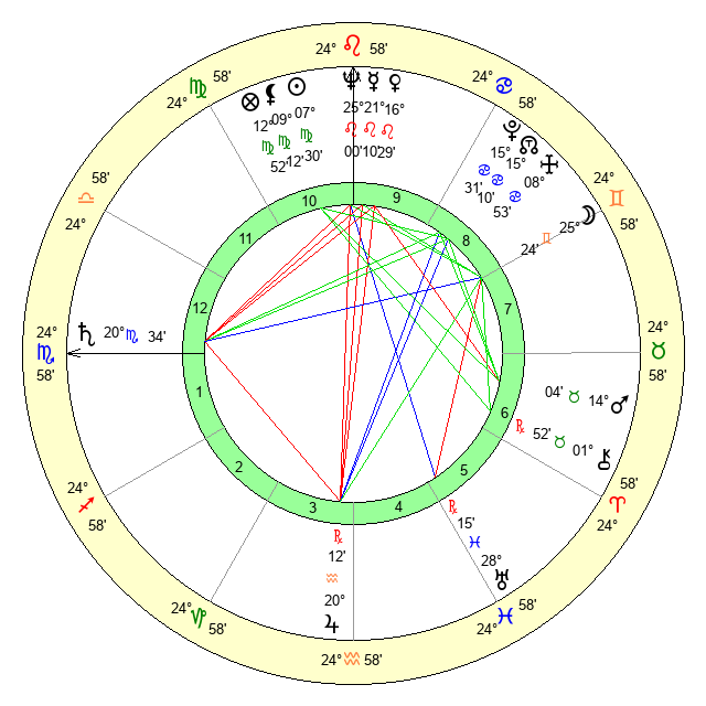 | Saturn | 21 Scorpio 3 | 29 Pisces 55 | 1 Sagittarius 6 |