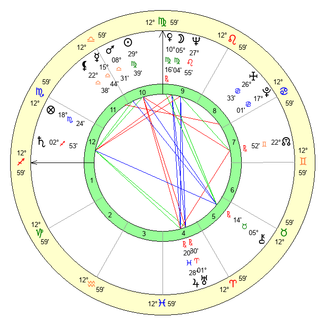 | Venus | 10 Virgo 16 | 5 Virgo 7 | 24 Scorpio 57 |