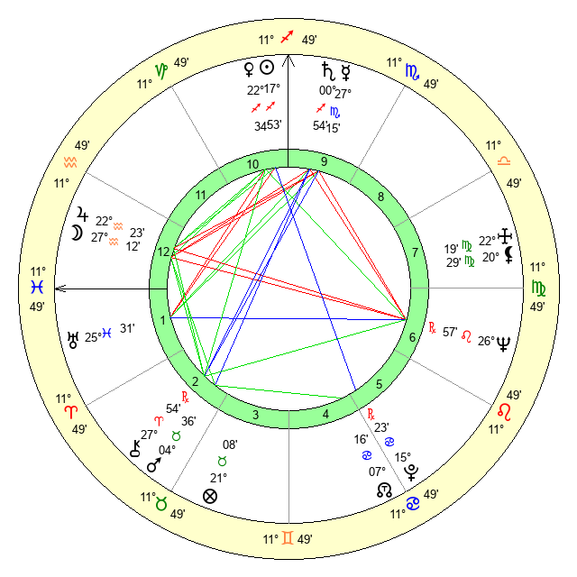 | Moon | 27 Aquarius 9 | 5 Virgo 12 | 11 Libra 57 |