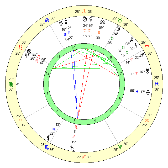 | Sun | 24 Gemini 18 | 24 Gemini 50 | 27 Virgo 28 |