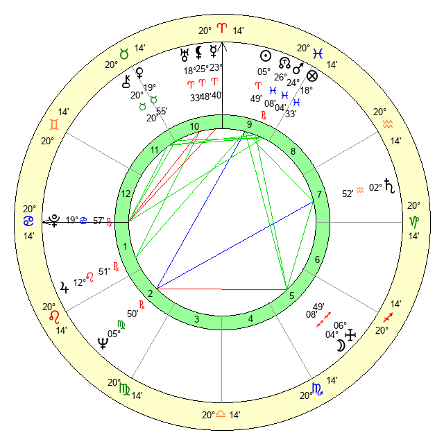 | Sun | 5 Aries 49 | 6 Aries 17 | 5 Cancer 47 |